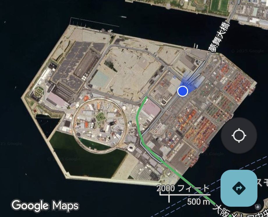 ちなみに、ここで転回しないとそのまま夢舞大橋に入り強制的に夢洲まで行くことになります。いや、橋の手前で側道に入ったらそのままUターンできるわ。たしか。