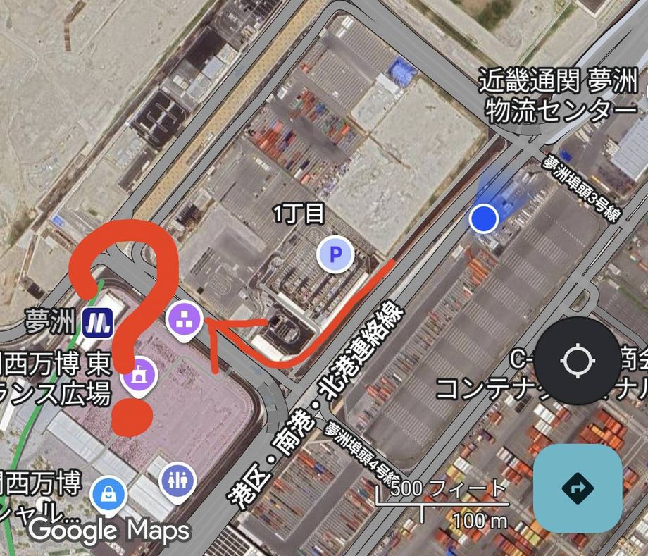 で、この場所からは少し戻ってUターンをし夢咲トンネルを通過するので夢洲まで一気に飛びます。
