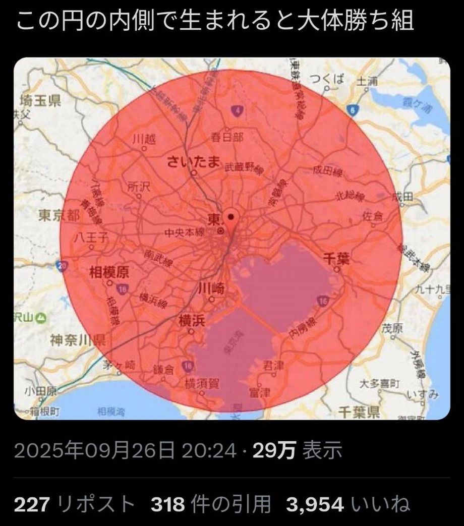 こんなん見たら一発でわかるけど円の端の方は確実に田舎やんか?この投稿者はその田舎に住んでるってことよw